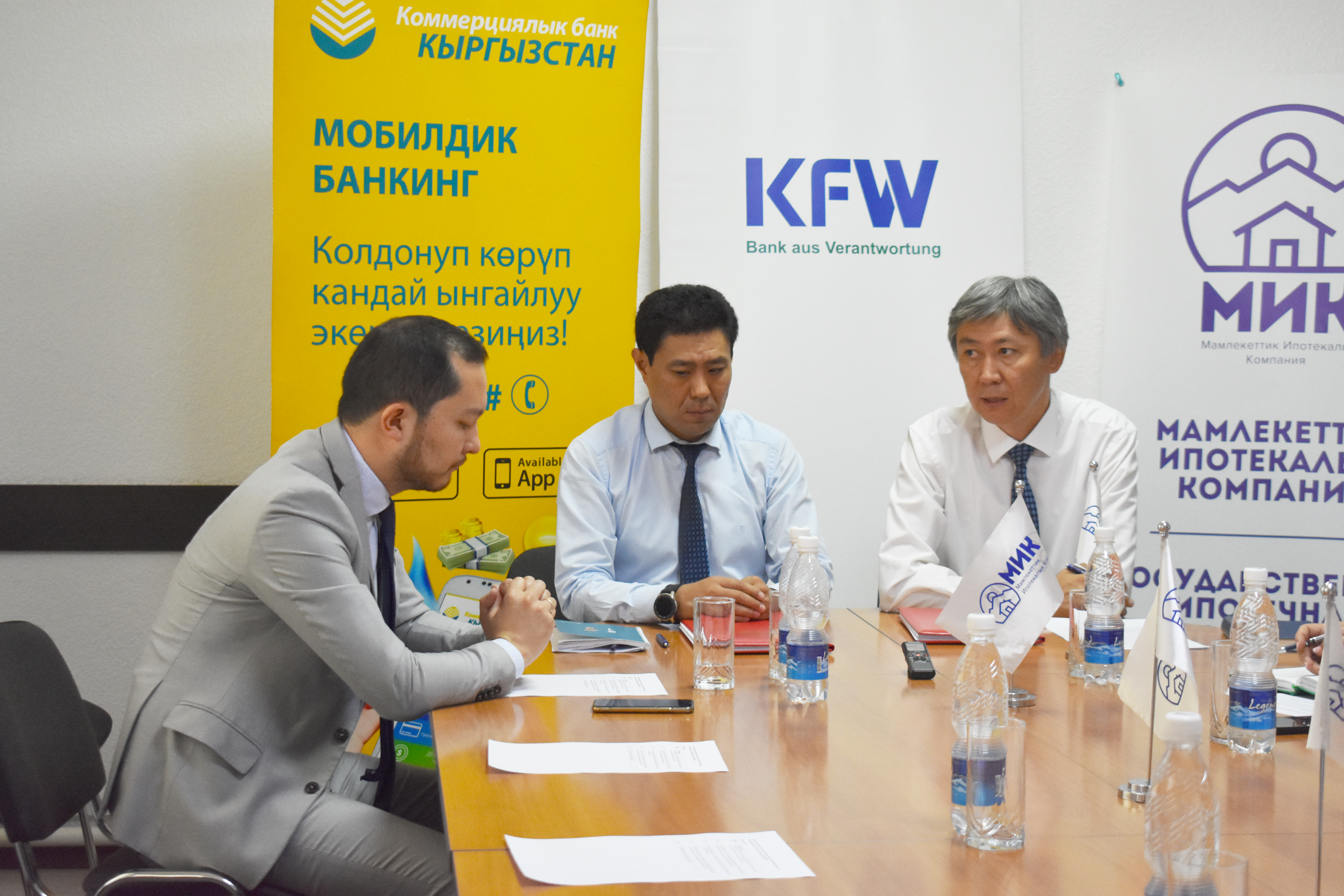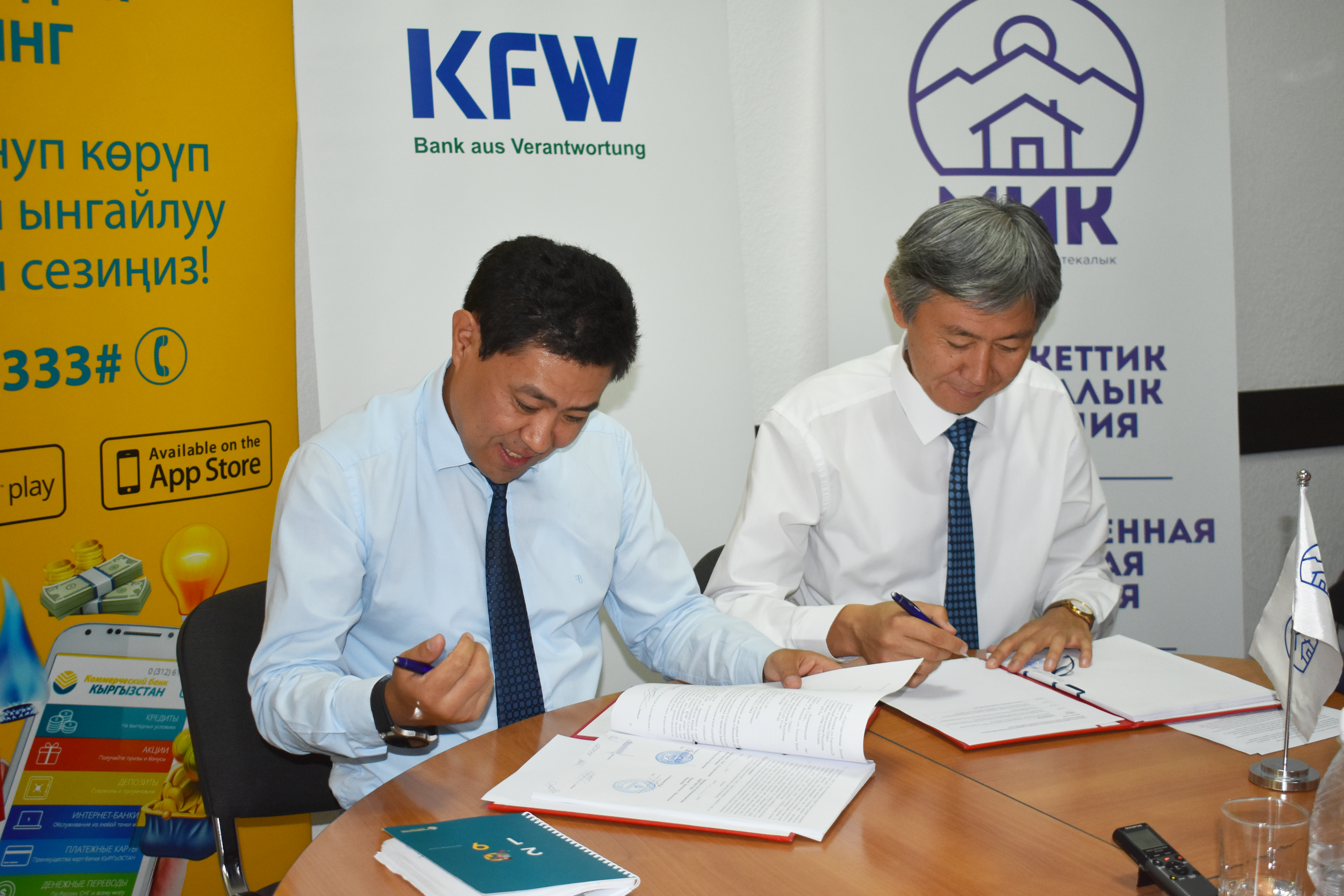 The signing was attended by the Deputy Chairman of State mortgage company OJSC Nurjigit Usenakun uulu and the first Deputy of the management Board of “Kyrgyzstan” OJSC Sagyndykov Zharkynbek. During 2018-2019 year it is important to note the effective work of the coordinator of the financial sector KFW German Bank Sultan Aiylchiev.