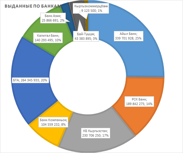 Жалпы тизмеге ылайык Программанын республика боюнча катышуучуларынын саны 4 684 адамдан турат. Учурда банктар тарабынан берилген насыяларды аймактар боюнча караганда, төмөнкүдөй:
