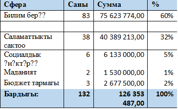Программанын төмөнкү катышуучуларында арыздары боюнча абал мындай: