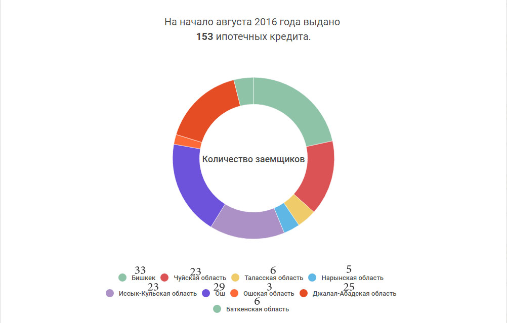 Более 150 человек уже получили недвижимость в ипотеку. Всего выдано кредитов почти на 150 млн сомов.