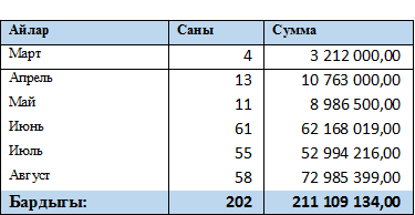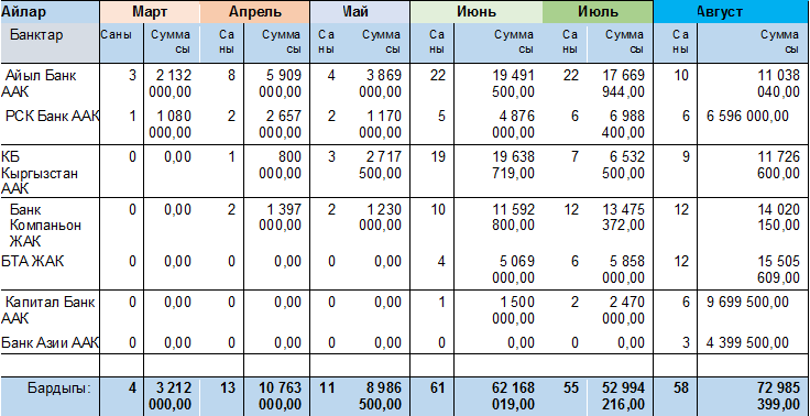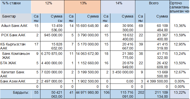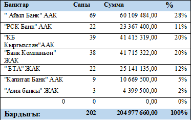 Бүтүндөй алганда, ипотекалык насыя алган бардык катышуучулар боюнча насыянын орточо суммасы 1 035 240,71сом. Насыянын сунушталган суммасынан иш жүзүндөгү суммасы 60%.