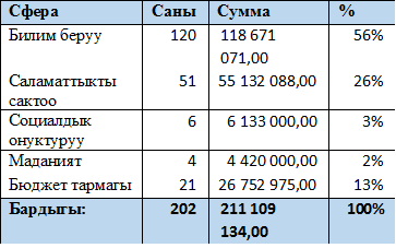 турак жайдын санитардык нормаларга туура келбегендигинен, үй бүлөнүн ар бир мүчөсүнө каратастандарттык норма -12 чарчы метрден (Кыргыз Республикасынынтурак жай кодексинин 45-статьясы) төмөн болуп калгандыктан улам жашап жаткан турак жайды кеңейтүүгө 140 катышуучудан арыз кабыл алынды;