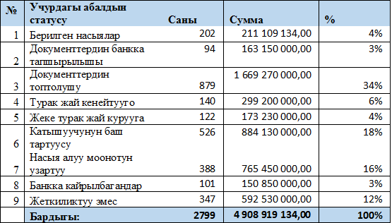 банкка документ тапшырышкан жана тиешелүү турак жайларды издеп жүрүшөт – 97 катышуучу;