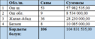 2016-жылдын 19-сентябрына карата банктар тарабынан түштүк аймагы боюнча берилген насыялар тууралуу маалымат: