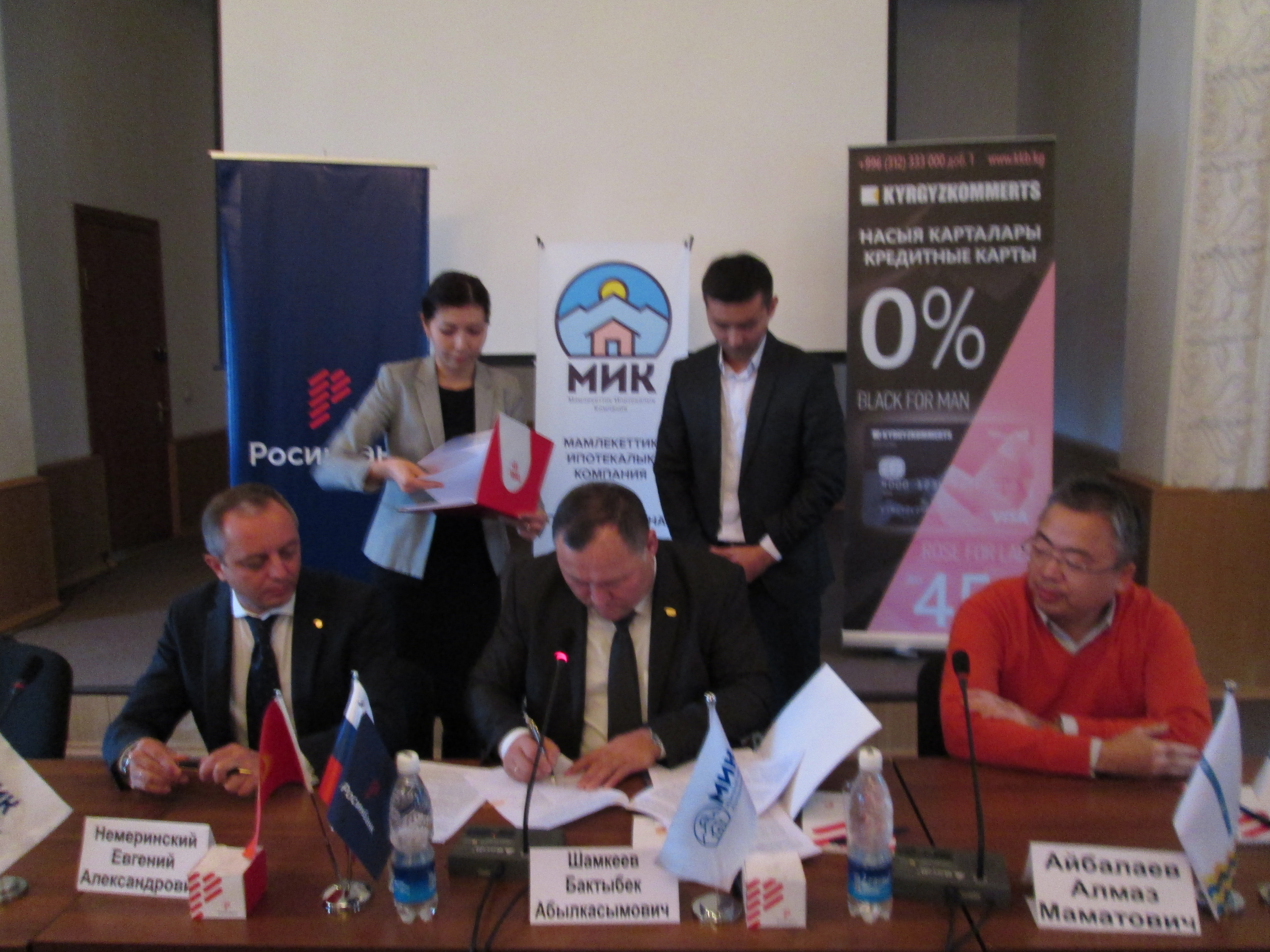 2016-жылдын 26-октябрында “МИК” ААК (мындан ары МИК) Башкармасынын төрагасы Шамкеев Бактыбек Абылкасымович, «Кыргызкоммерцбанк»" ААК Башкармасынын төрагасы Айбалаев Алмаз Маматович жана "Росинбанк" ААК башкармасынын төрагасы Немеринский Евгений Александрович Кыргыз Республикасынын Өкмөтүнүн “Арзан турак жай 2015-2020” программасын (мындан ары Программа) жүзөгө ашыруунун чегинде кызматташуу тууралуу Генералдык келишимге кол коюшту.