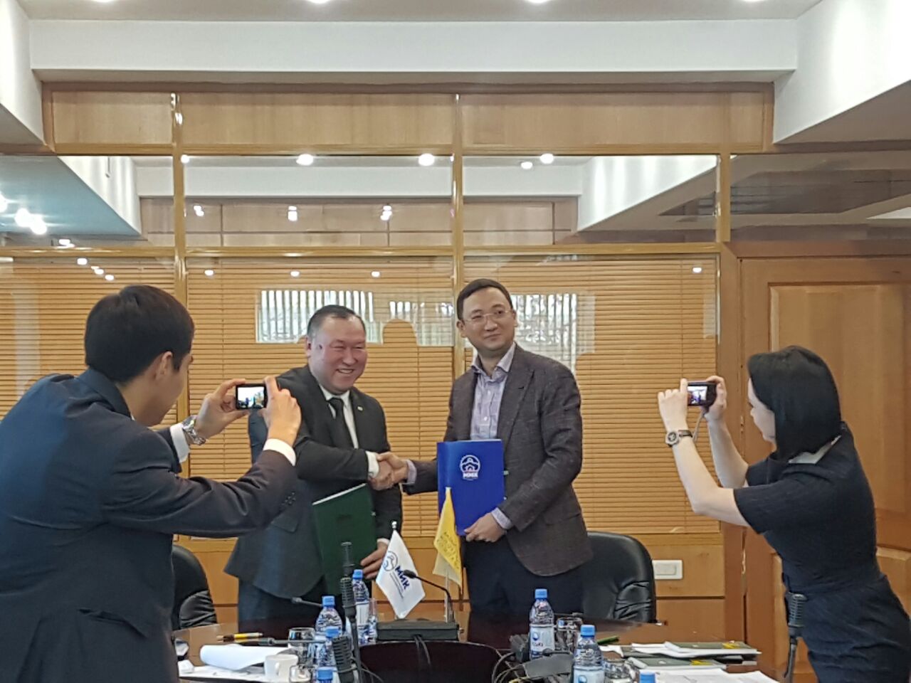 Жолугушууда “Казакстан Ипотекалык Компания” ИУ” АК Башкармасынын төрагасы Мухамеджанов Адиль Бектасович жана “Мамлекеттик Ипотекалык Компания” ачык акционердик коомунун Башкармасынын төрагасы Шамкеев Бактыбек Абылкасымович ипотекалык насыялоо жаатында өзара кызматташуу тууралуу меморандумга кол кюшту.
