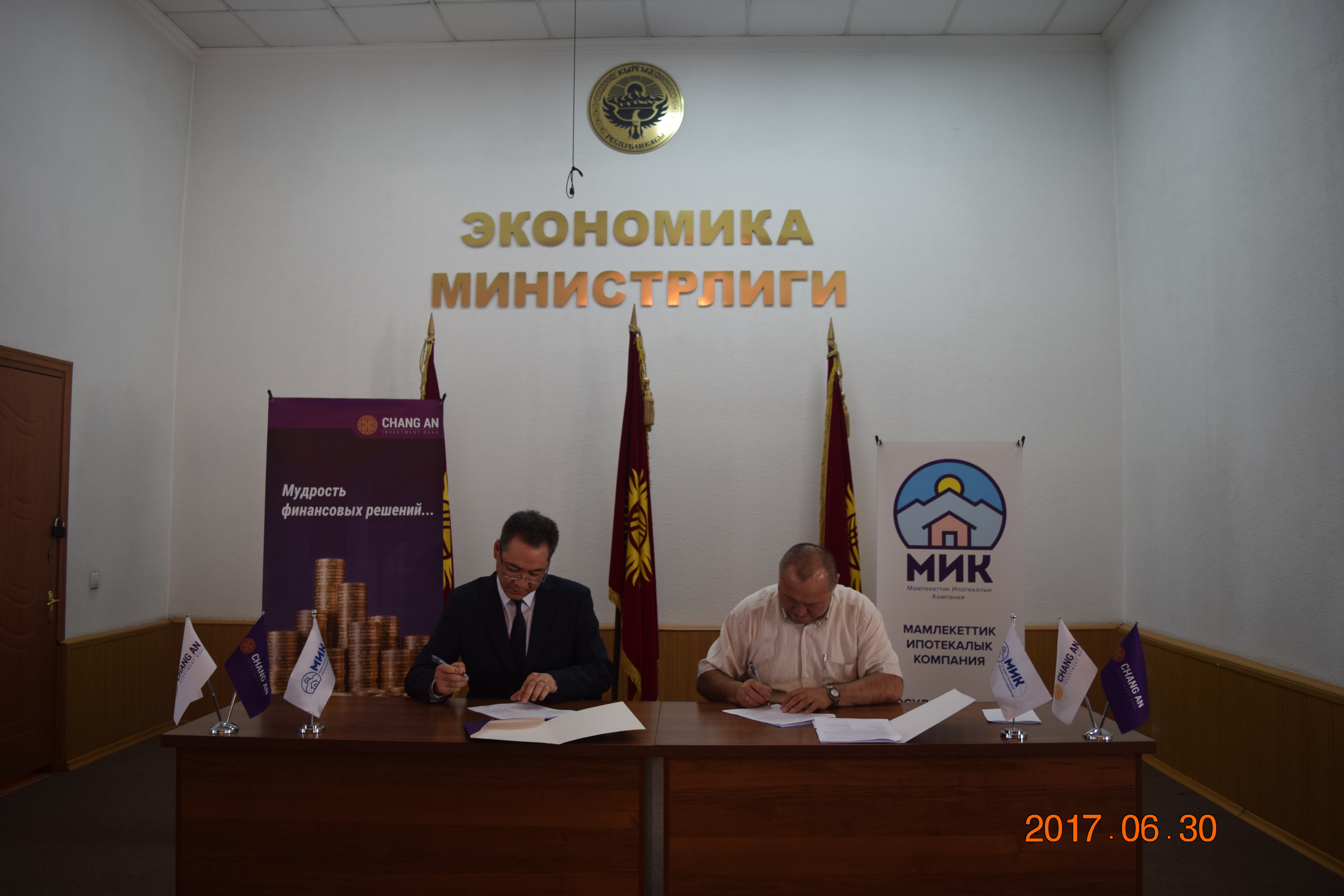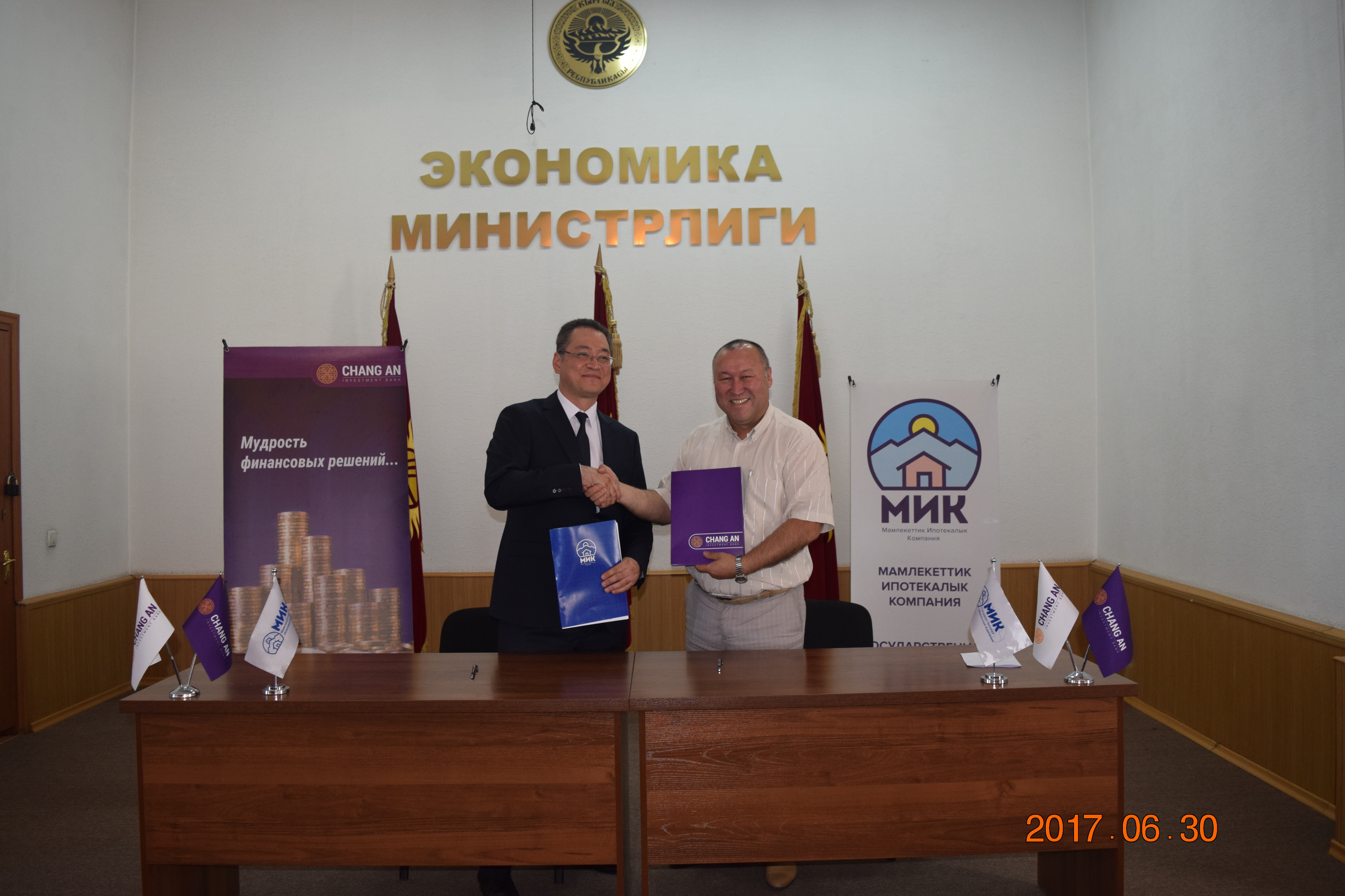 2017-жылдын 30-июлунда “Мамлекеттик Ипотекалык Компания” ачык акционердик коомунун (МИК) Башкармасынын төрагасы Шамкеев Бактыбек жана “Чанг Ан” Инвестициялык Банк” ачык акционердик коомунун Башкармасынын төрагасы Акматов Азамат Кыргыз Республикасынын Өкмөтүнүн “Арзан турак жай 2015-2020” программасын (мындан ары Программа) жүзөгө ашыруунун чегинде кызматташуу тууралуу Генералдык келишимге кол коюшту.