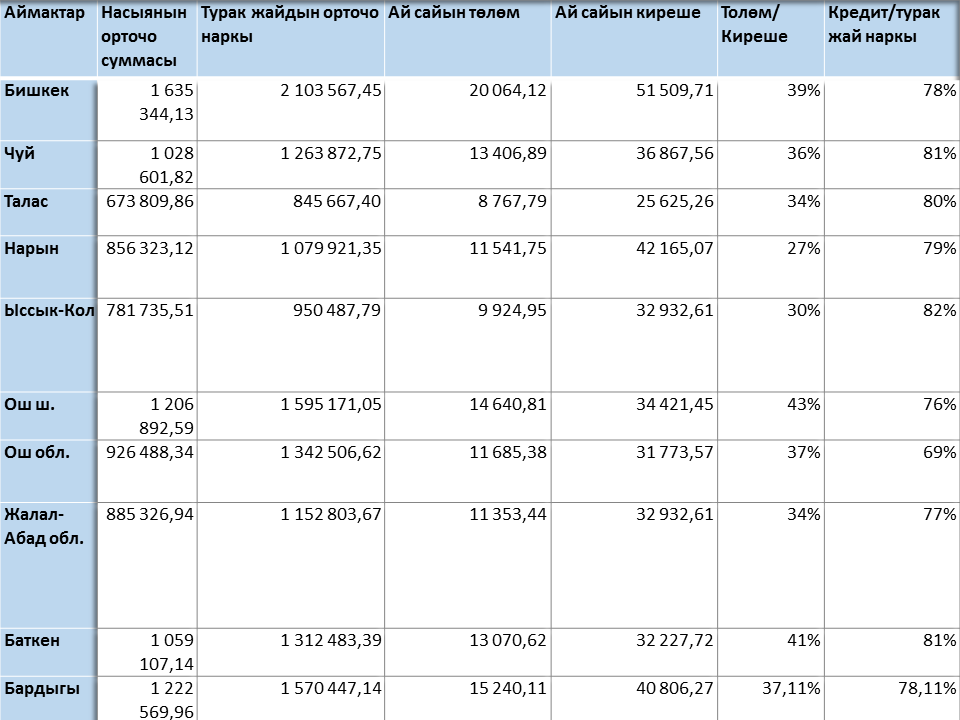 2017-жылдын 5-сентабрына карата МИК тарабынан 1638 насыя кайра каржыланып, жалпы суммасы 2 млрд. сомдон ашууда.