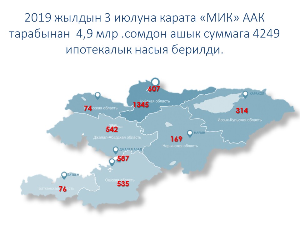 2019-жылдын 3 июлуна карата «МИК» ААК тарабынан 4,9 млрд. сомдон ашык суммага 4249 насыя берилди.