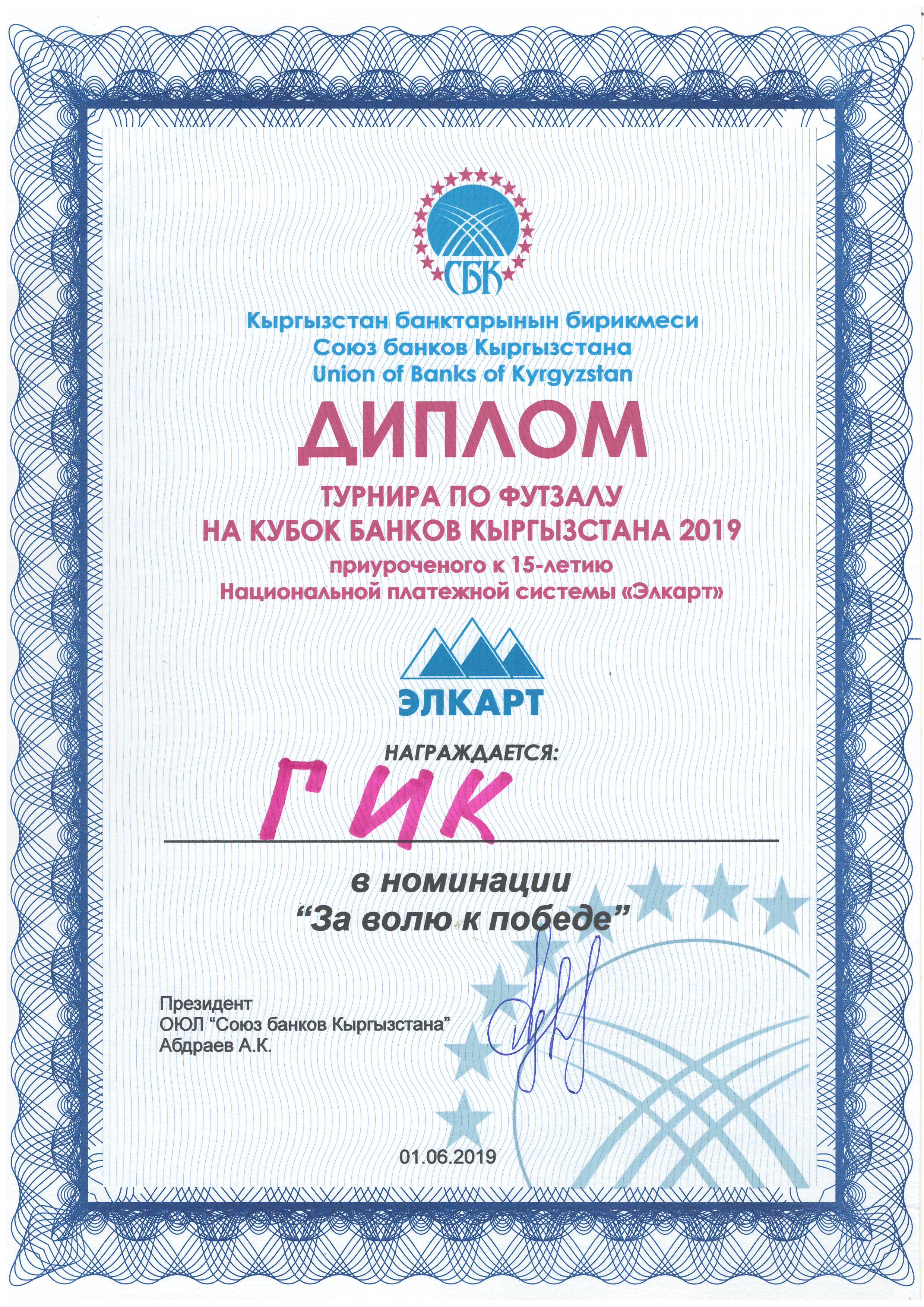 - "МИК" ААК-у биринчи жолу “ Кыргызстандагы банктардын Кубогу ” банктар аралык турнирине катышып, жана анын төрттөн бири финалына чыкты. “МИК” ААК-ун командасы "Кыргызстандын банктар Союзунун" уюштуруучу тобу менен "Жеңишке болгон умтулуу үчүн " диплому менен сыйланды.