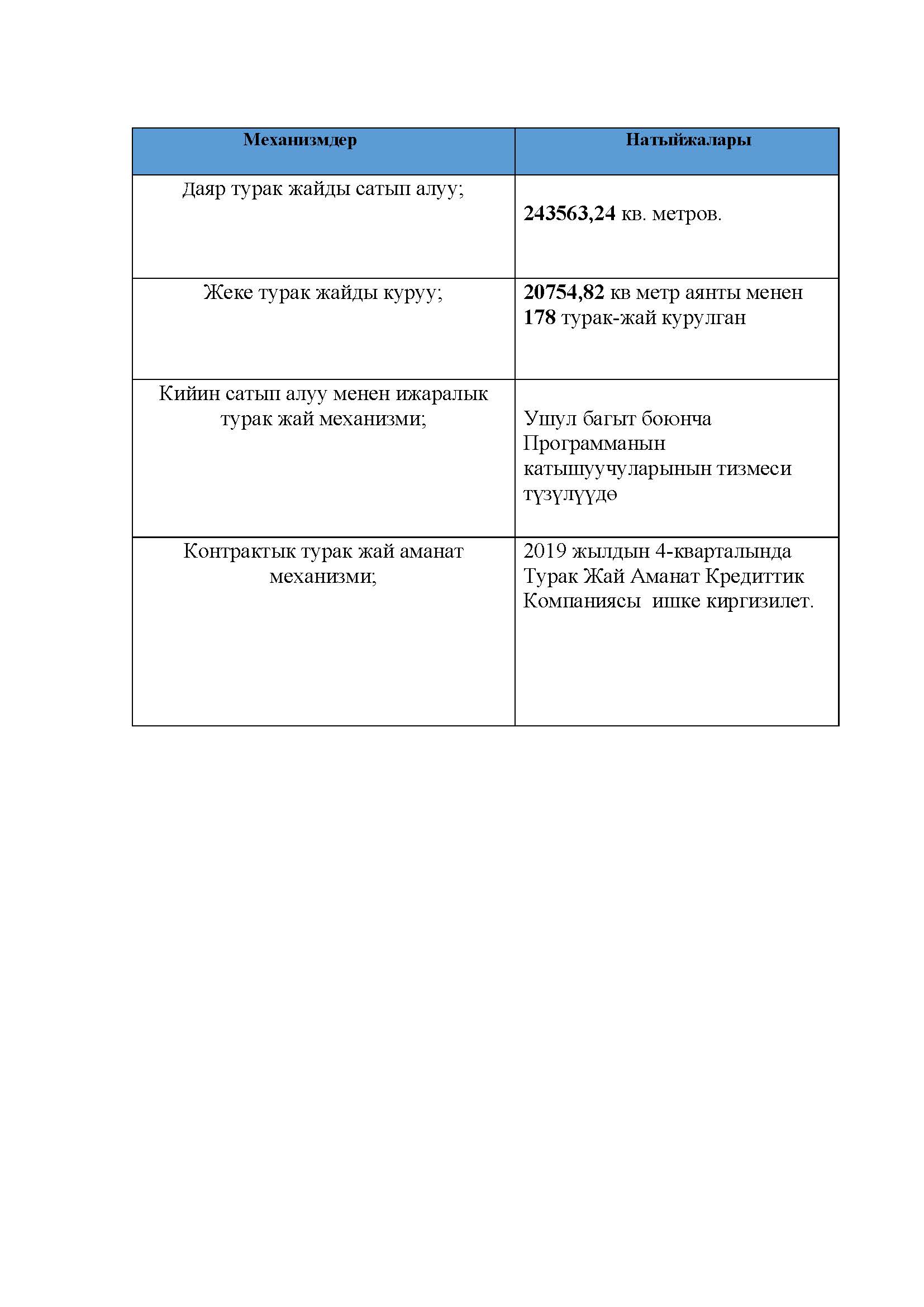 КР Өкмөтүнүн “Арзан турак жай 2015-2020” Программасында ипотекалык насыялоонун эки багыты аныкталган: