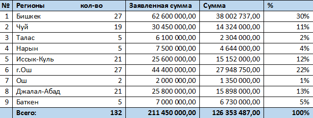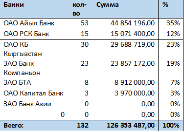 Всего к настоящему времени в Сводных списках числятся 4 684 участников Программы по всей республике. К настоящему времени выданные кредиты банками выглядят следующим образом: