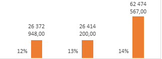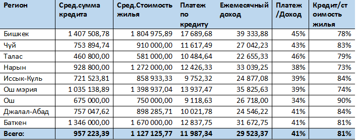 Средние значения по платежам за кредиты в разрезе регионов: Сумма кредита от заявленной суммы составляет 60%.