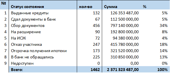 По всем участникам Программы, сотрудниками Компании производятся на постоянной основе работы по уточнению их статусов, и выглядят следующим образом: