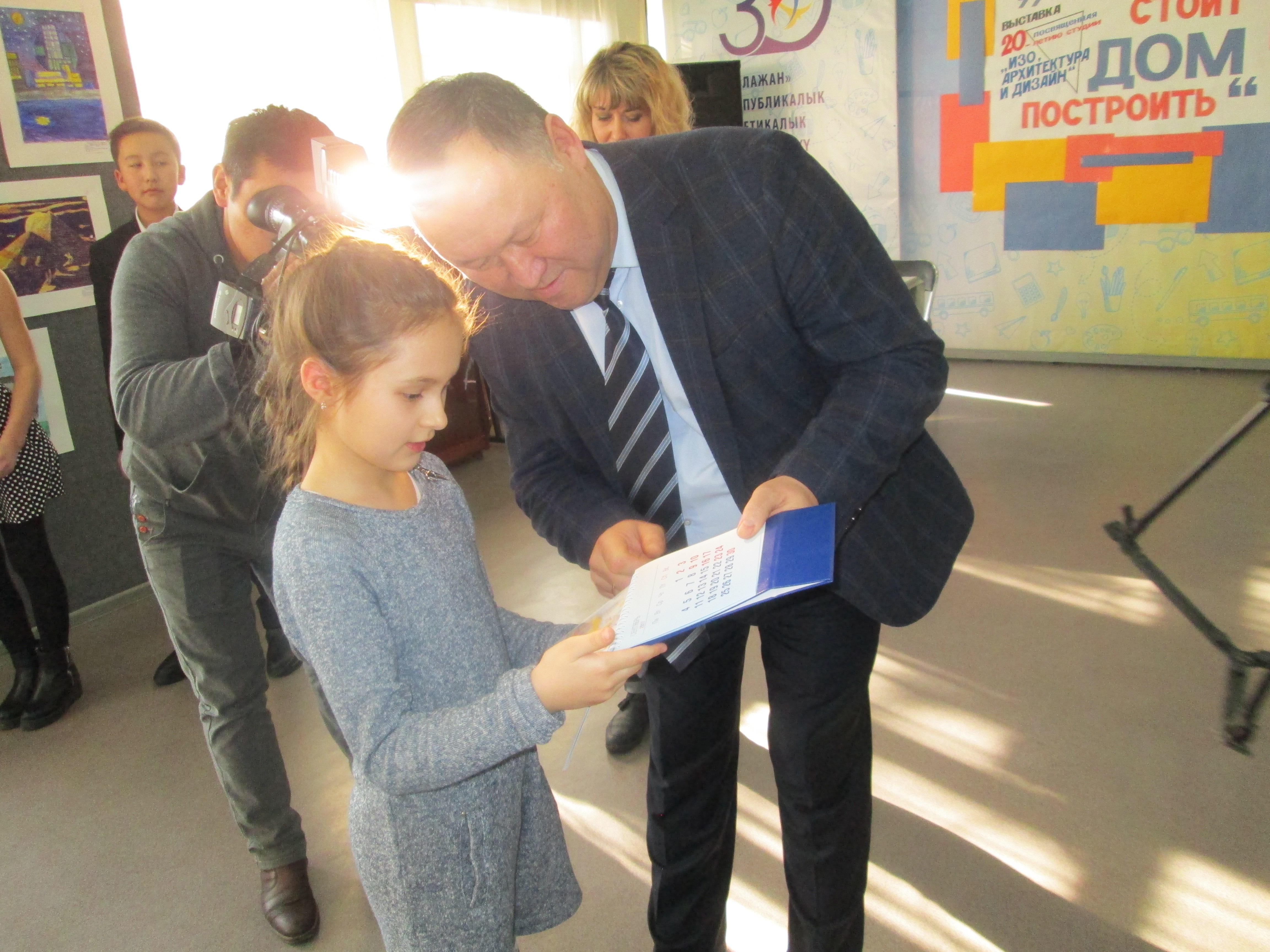 Кроме этого, глава ГИК вручил молодым талантливым художникам фирменные календари, сертификаты и грамоты с международных конкурсов.