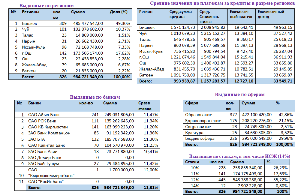 По состоянию на 14 февраля 2017 года выданные кредиты банками выглядят следующим образом: