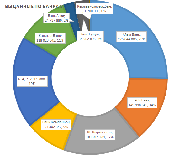 На 15 марта 2017 года ГИК выдано 906 кредитов на сумму 1 093 694 915,00 сомов.