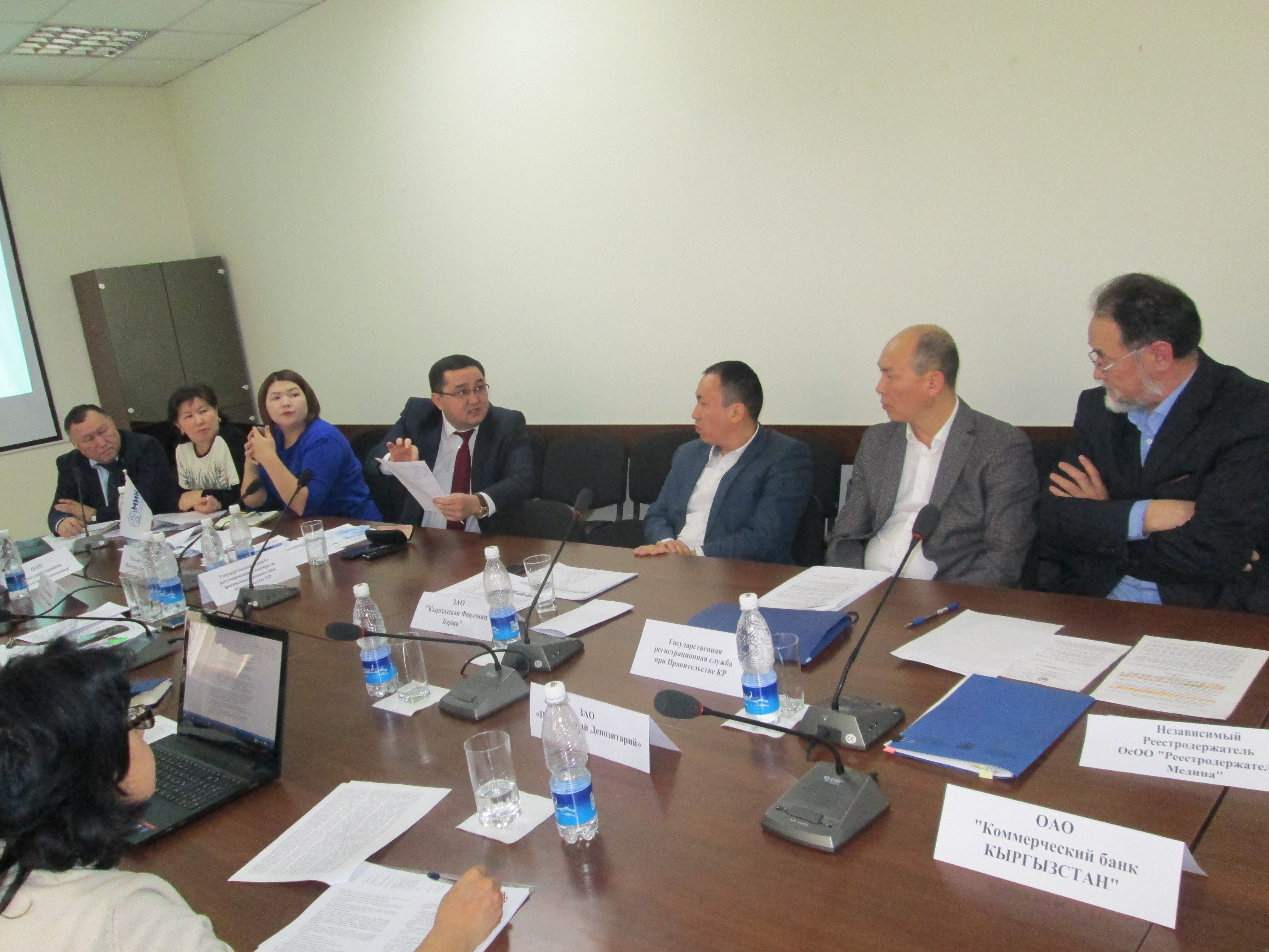 Отметим, что в данном совещании участвовали представители Кыргызской фондовой биржи, Центрального депозитария, Финансовой компании «Сенти», Государственной регистрационной службы при Правительстве КР, а также представители коммерческих банков - «Банк Компаньон» и «Коммерческий банк Кыргызстан».