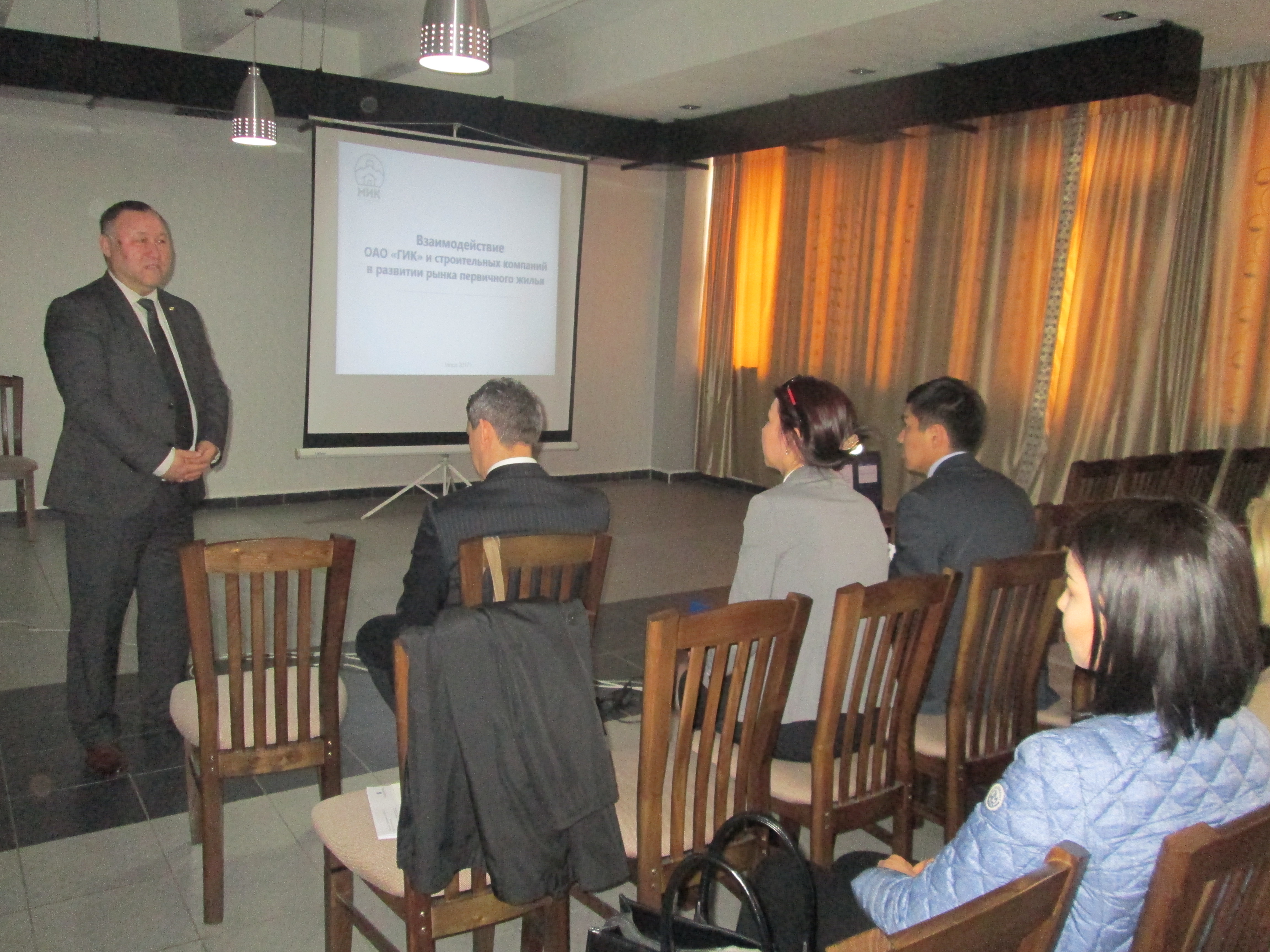В рамках деловой части выставки председатель Правления ОАО "ГИК" Бактыбек Шамкеев провел презентацию деятельности госкомпании. С помощью слайдов глава ГИК представил реализуемую в Кыргызстане ипотечную программу, в том числе с данными по объемам кредитования, в разрез регионов и сфер деятельности заемщиков. Ознакомил с планами по обращению ипотечных ценных бумаг, возведению социального жилья во всех областях республики, сотрудничестве со строительными компаниями по строительству жилого фонда с применением жилищных сертификатов.