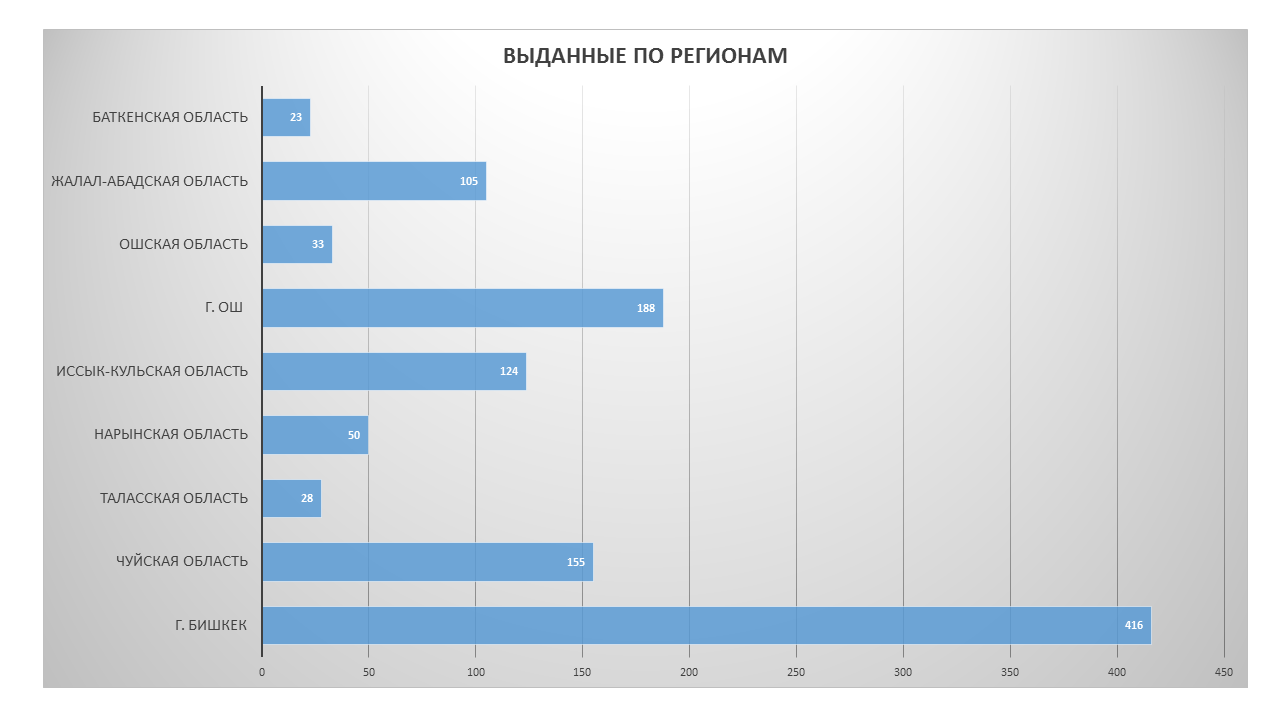 На 17 мая 2017 года ГИК выдано 1122 кредитов на сумму 1 370 349 551,00 сомов.