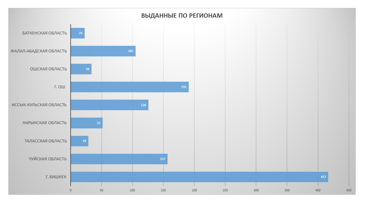 На 18 мая 2017 года ГИК выдано 1134 кредитов на сумму 1 381 961 551,00 сомов.