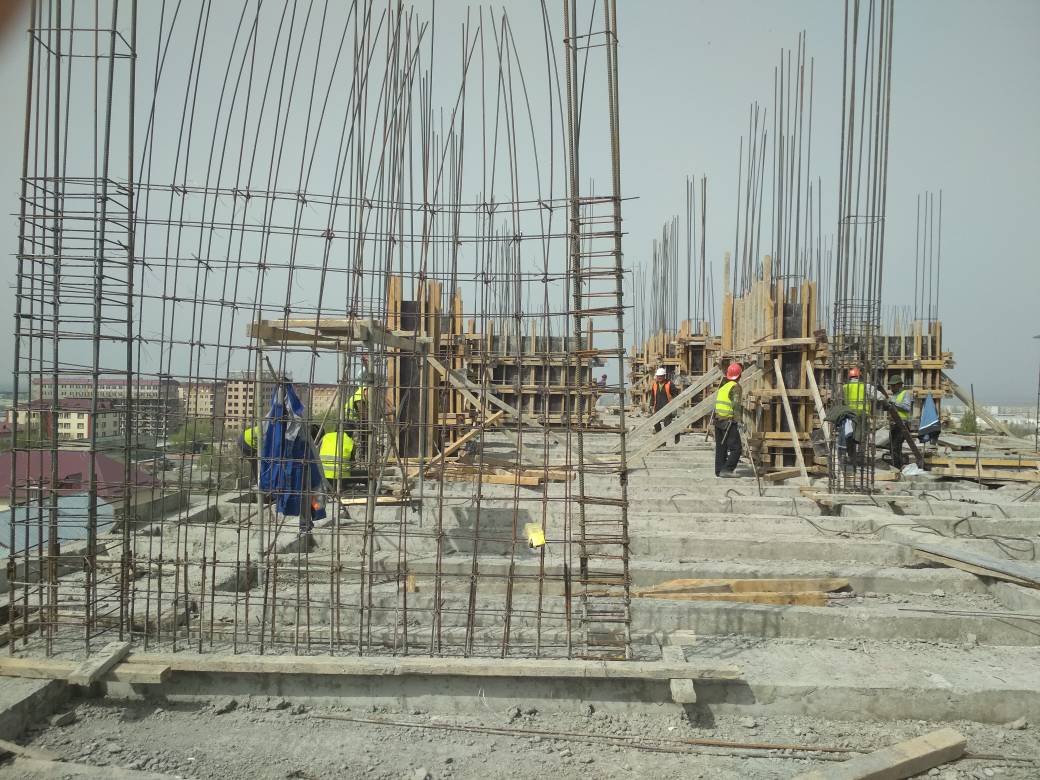 12.07.2017г. был проведен конкурс и заключен договор от 28.08.2017г. на сумму 93 188 226 сом с ОсОО «ПП «Минур». В настоящее время подрядной организацией выполнено устройство грунтовой подушки с послойным уплотнением, устройство фундамента с армированием, устройство колонн, стен, перекрытия, ригелей подвала и 1-го этажа, проводится армирование и установка опалубки колонн 2-го этажа.