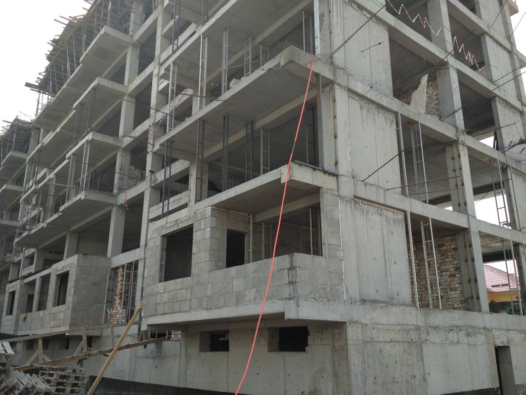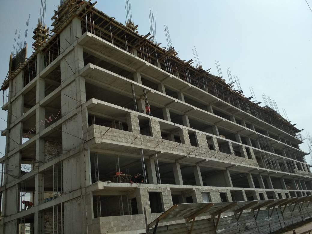 09.08.2017г. был проведен конкурс и заключен договор от 05.09.2017г. на сумму 219 431209 сом с ОсОО «MS Building».В настоящее время подрядной организацией выполнено армирование и бетонирование ригелей, балок, перекрытий, лестниц 1-6-го этажей, завершена кладка наружных стен (без утепления) и перегородок 1-го этажа, ведется кладка стен 2-3-го этажей, проводится армирование колонн 7-го этажа. Нужно иметь в виду, что строительство ведется «под ключ» в рамках принятого проектного решения и смет. Проектируемые объекты являются типовыми и как правило требуется только привязка под выделенный участок для строительства.